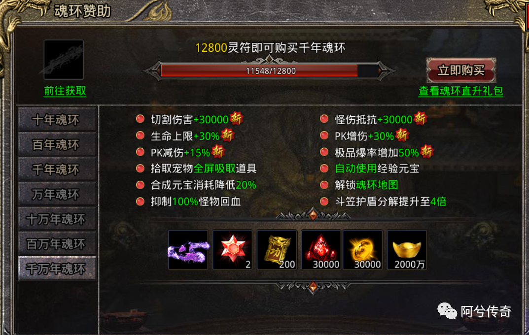 8.PK增伤+30%:在PK中,攻击力的提升是非常重要的,而千万年魂环特权中的加成能够使得自己的PK增伤提高30%。