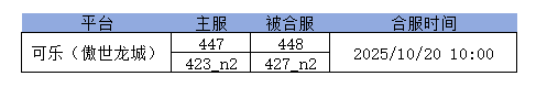 为了给各位玩家提供更好的游戏体验,傲世龙城3D将于10月20日10点进行合服操作,合服期间将无法登录游戏,请各位玩家合理安排游戏时间,避免不必要的损失。