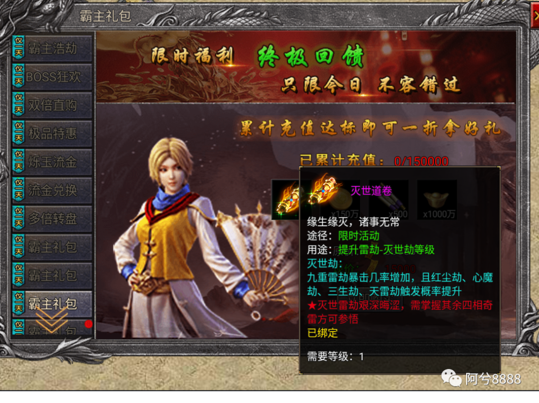 哈喽,大家好啊,传说之城折扣包服帝战传奇盛世传奇水浒梁山传奇灭世道卷怎么获得,传说之城折扣包服帝战传奇盛世传奇水浒梁山传奇灭世道卷获取途径跟随阿兮一起来看看吧,希望能够给大家带来帮助哦!游戏资讯、游戏问题、游戏福利礼包折扣等关注VX【wole71】游戏下载地址5u8h.com